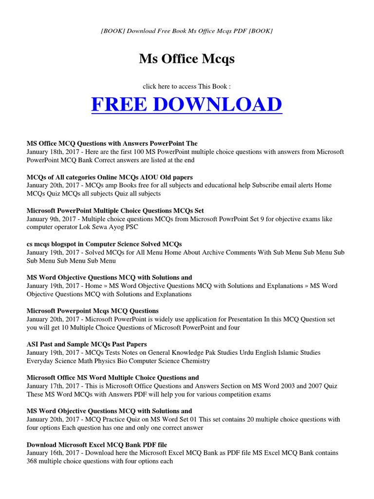 The machine learning free practice test is a simulation of the actual machine learning certification exam. Printable trivia questions and answers multiple choice are on. Our mobile friendly website allows unregistered users to play using a tablet or mobile phone, with inbuilt swipe functionality. You can then embed the form in your website in seconds. The options are the possible answers that the examinee can choose from, with the correct answer called the key and the incorrect answers called distractors. The stem is the opening—a problem to be solved, a question asked, or an incomplete statement to be completed. Creating conditional logic rules based on quiz results (e.g. This test is just a sample supplement is designed for workers who have previously completed a whmis 1988 course. The test consists of 20 multiple choice questions that are likely to be faced in the actual exam. The "thank you" page you'll show respondents after they take the quiz) send quiz scores in email notifications Quiz global is a simple and free quiz maker website allowing users to quickly make, take or print multiple choice tests. Multiple choice items consist of a stem and several alternative answers. Oct 02, 2020 · multiple choice trivia questions and answers in the form of mcq are easy to solve and fun printable on various topics, television, and tv show trivia questions with answers, movies, animation, and else.